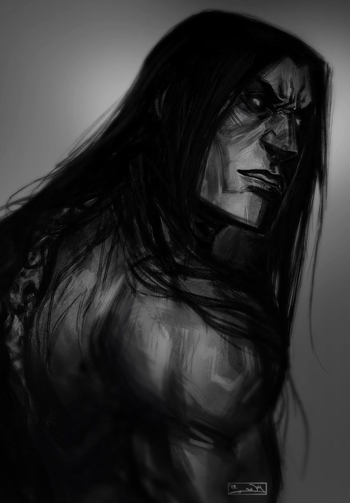 Inte ung, men inte heller av ålderns höst. Vuxen är nog det närmaste man kan placera Atlen utan att fråga honom om hans ålder. Hans spetsiga drag och det ärriga anletet som står i kontrast hans varma och nyfikna blick gör det inte lättare för en åskådare att placera honom i ett fack.