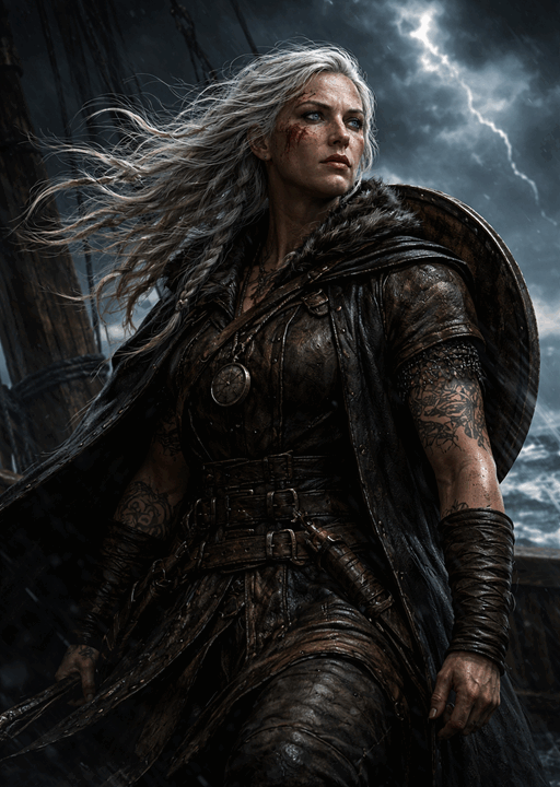 I oväder rör hon sig inte som ett offer, utan som något som hör hemma där. När andra skepp sliter för att hålla kurs, skär Stormfrun genom sjön med tung, beslutsam kraft – ärrad, mörk och nästan omöjlig att sänka.